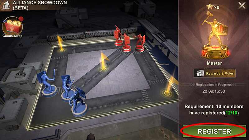 The Alliance Showdown is a weekly passive event where all you have to do is Register.